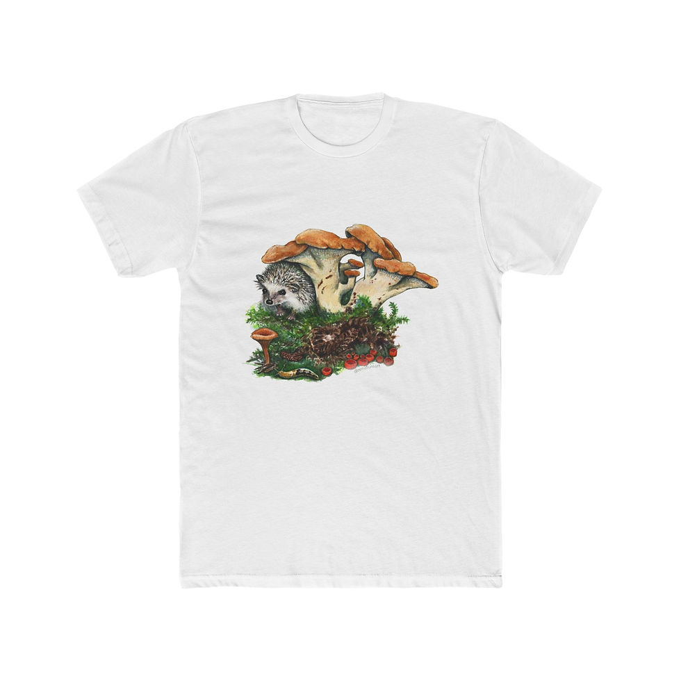 Mushroom Hedgehog T‑Shirt — Forest Cottagecore Wildlife Tee